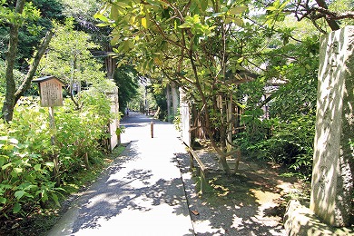 この道の左右は西管領屋敷(かんれいやしき)、東管領屋敷と呼ぼれ室町時代に鎌倉公方(くぼう)の執事(しつじ)をつとめた山之内(やまのうち)上杉氏(うえすぎし)の管領屋敷があったところです。