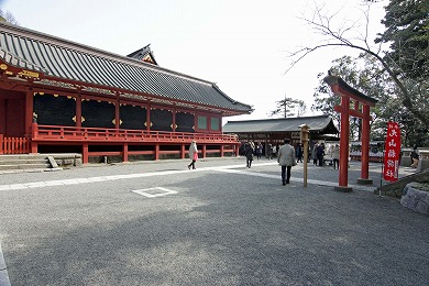 鶴岡八幡宮の拝殿に出ます。
