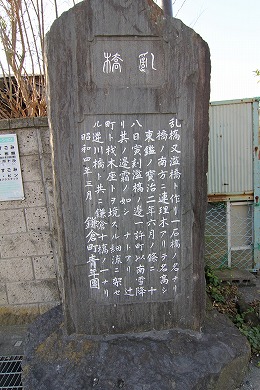 この橋は、材木座の北東から西へ流れる滑川に注いでいる小川にかかる石橋ですが、鎌倉十橋(じっきょう)の一つに数えられています。