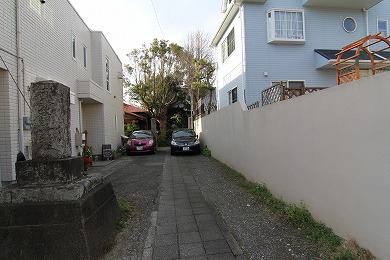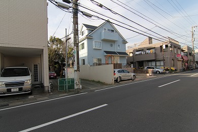 道路先の反対側、電信柱のところが入り口です。