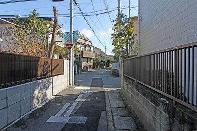 斜め右の小路に入ります。(車道を真っ直ぐ行ってもOK)