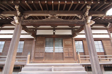 後に修理はされていますが、江戸時代末期の山門の脇を通り境内に入ると、正面に本堂があります。内陣の梁(はり)や柱の色彩も鮮やかで、本尊の三宝祖師像