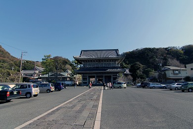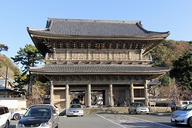 この山門は鎌倉最大といわれる屋根が二重の門で、江戸時代のものは、鶴岡八幡営の表門を移したものだといわれ、現在のものは、1847年(弘化4年)に光明寺が再建したものです。