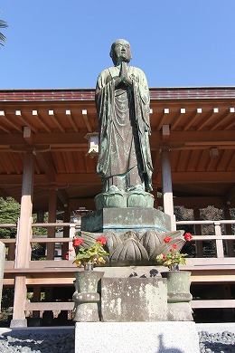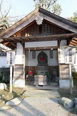 本堂に向かって右手前の地蔵堂(じぞうどう)の中に、「正中二年」(1325年)の年号がある「綱引地蔵(つなひきじぞう)」が安置されています。また、地蔵堂の右手脇に五所神社(ごしょじんじゃ)の板碑(いたひ)と同じころの鎌倉時代の板碑が置かれています。