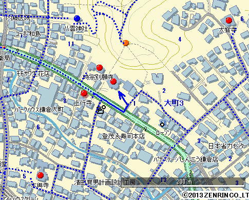 上行寺を出て右へ。