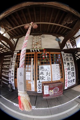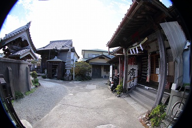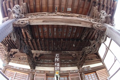 山門の裏側には左甚五郎(ひだりじんごろう)作と伝わる竜の彫り物があり、山門の正面に本堂があります。江戸時代後期の熊本の大名細川家(ほそかわけ)が造ったといわれる本堂の軒の表欄間(おもてらんま)や前の柱との梁(はり)などに、すばらしい竜の彫り物があります。