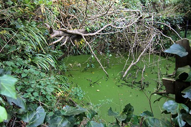 神社の左側奥にいけがあります。手入れはされていませんが、昔は貴重な水だったのでしょう。(いまは作があります。)