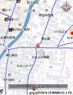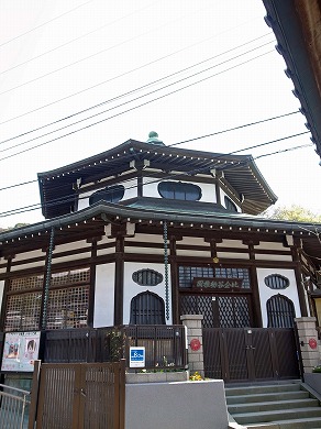 総門前の右脇に「比企能員邸址(ひきよしかずていあと)」の史跡案内の石碑が立っていますが、総門をくぐると右手に八角形の園舎の「比企谷(ひきやつ)幼稚園」があります。この幼稚園の敷地は、もと妙本寺の付属寺院であった大円坊(だいえんぼう)があったところです。