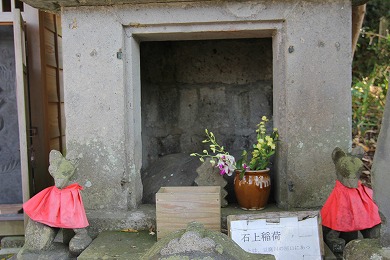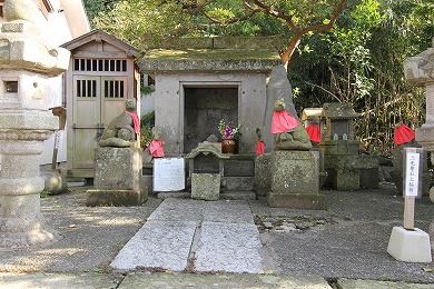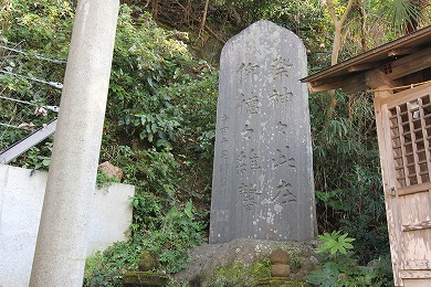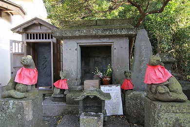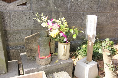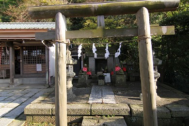 材木座海岸の豆腐川の河口にあったという石が祀られています。