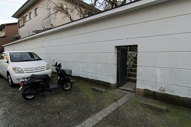 道路脇の駐車場にある裏口から入ります。