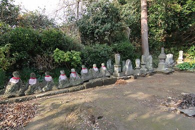 境内の本堂裏手には、大小の宝篋印塔(ほうきょういんとう)が立っています。右側にある大きな石塔は「徳治三年」(1308年)とみられる年号があり、善導寺の開山尊観の墓と伝えられています。現在鎌倉に現存する宝篋印塔の中で、年号が推定できる最も古いものです。鎌倉時代の作として国の重要文化財に