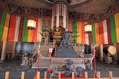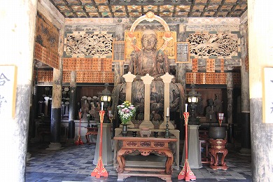 明(みん)(今の中国)の竹西(ちくさい)が書いたといわれる「海東法窟(かいとうほうくつ)」の額を掲げ、千手観音(せんじゅかんのん)をまつっています。天井には小泉淳作の立派な龍の絵が描かれています。