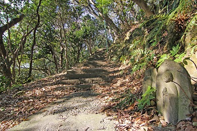 駐車場の脇のゆるやかな坂道を山に向かって進み、石鳥居をくぐり、江戸時代の石仏を左右に見ながら、やや急な石段を上ると「秋葉さん」で親しまれている秋葉山(三尺坊)大権現があります。