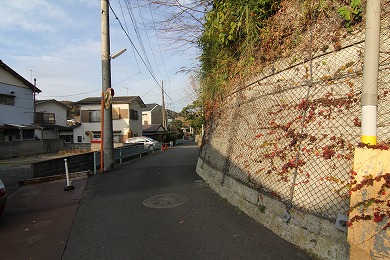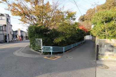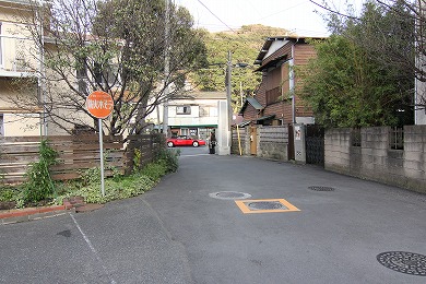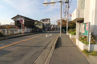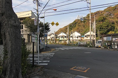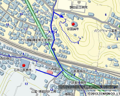 長勝寺の山門を出て、左折し、踏切を渡ります。交番のところの路地に入り道なりに進みます。