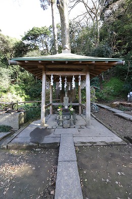 若狭の局が身を投げた井戸である「蛇形ノ井」は、松葉ヶ谷(まつばがやつ)にある「六方ノ井(ろっぽうのい)」と通じているといわれています。家宝を守っている主の蛇は、六方ノ井と蛇形ノ井を往復して、蛇形ノ井に主の蛇がいるときはその井戸の水面にさざ波が立ち、六方ノ井にいるときは絶対さざ波はたたない