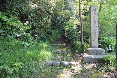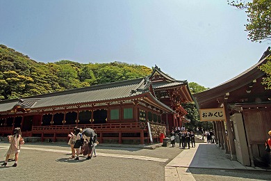 西行は文治2年(1186)8月15日鎌倉の地に足を踏み入れた。西行(69歳)が鳥居の周辺を徘徊していると、参詣のため八幡宮を訪れていた頼朝が目に留めて、梶原景秀に質問させると、西行本人とわかった、頼朝は「参詣後に会いたい」と西行に伝える。