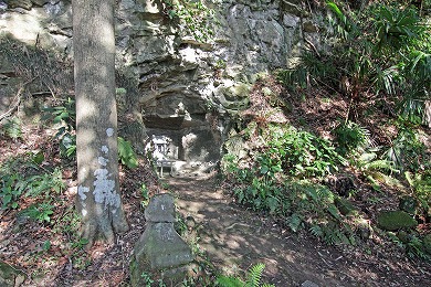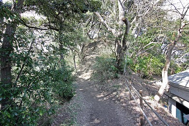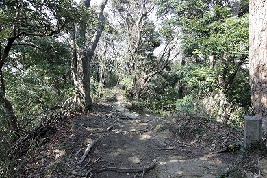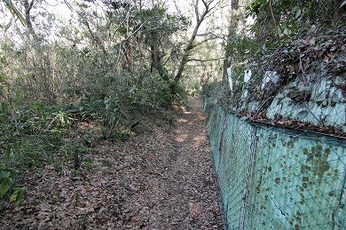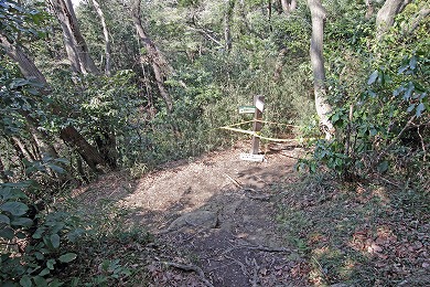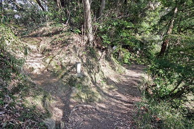 写真左上の道を下ってきました。左折し、写真の右側の道を下ります。