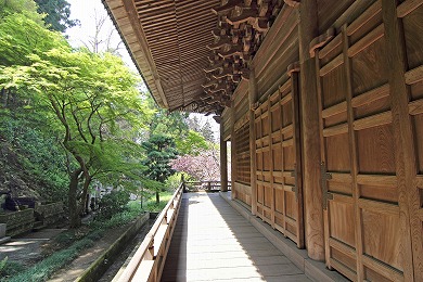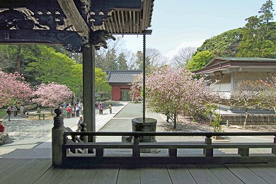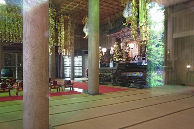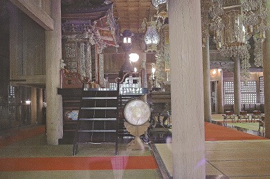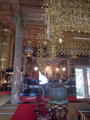 境内の奥正面にある祖師堂内には、中央に美しい立派な御宮殿(ごくうでん)ともいわれる厨子(ずし)があり、その中に日蓮上人坐像(にちれんしょうにんざぞう)が安置されています。この像は、身延山(みのぶさん)や本門寺の像とともに日蓮の生前の姿を移した一木から作られた三体の像といわれ、14世紀ごろの作とみられます。御宮殿の右には日蓮の高弟(こうてい)で2世の日朗(にちろう)と比企能員夫妻の像、左に3世の日輪(にちりん)と比企能本夫妻の像が安置されていて、外から格子(こうし)ごしに拝観できます。