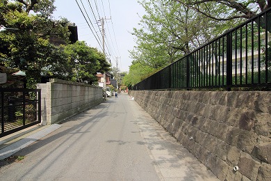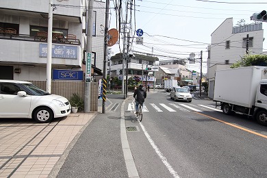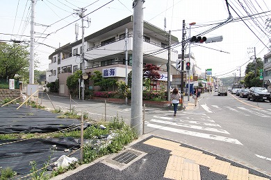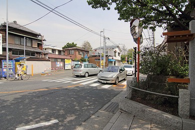 宝戒寺の山門を出て、右の横断歩道を渡ります。