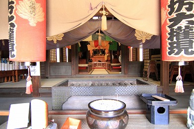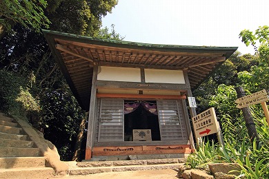 お堂の中には、天狗の姿をした半僧坊(はんそうぼう)像がまつられ、神と仏が一緒になった信仰を伝えています。ここからの眺めはたいへん素晴らしく、毎月17日にお祭が行われます。半僧坊の天狗には次のような話が伝わっています。
