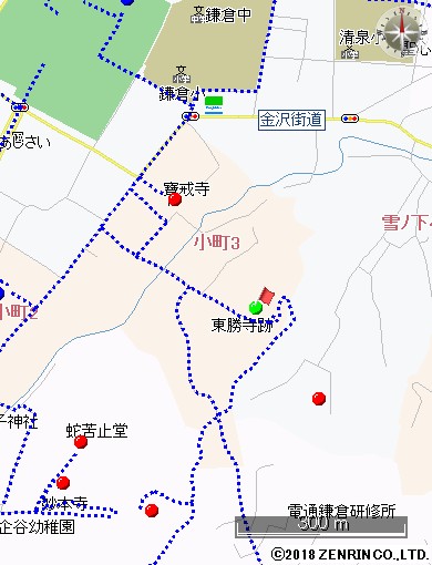 東勝寺は、13世紀前半に鎌倉幕府の三代執権・北条泰時が創建した寺院。1333年5月22日、新田義貞鎌倉攻めの時、新田軍が、若宮大路まで迫ってきた事を知った北条は一族郎党870名余りとここに立て篭もり、火をかけて最後を遂げた。鎌倉幕府滅亡の地。