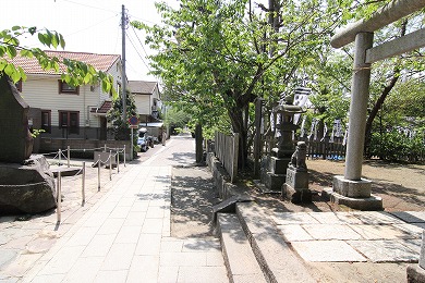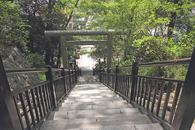 階段を下りた右が白旗神社です。
