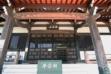 本堂には本尊の阿弥陀如来(あみだにょらい)像があり、宅間浄宏(たくまじょうこう)の1384年(永徳4年)の作とみられる地蔵菩薩像はもと報恩寺(ほうおんじ)の本尊で、太平寺(たいへいじ)から法華堂へ移され、さらにここへ移っています。また、本尊の右脇の、彩色したあざやかな土紋をつけた如意輪観音像は、南北朝期につくられたとみられ、今はない光福寺(こうふくじ)から如意輸堂、法華堂と伝えられて、ここへ移されています。