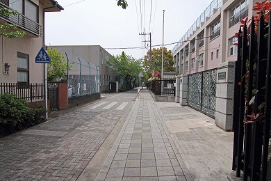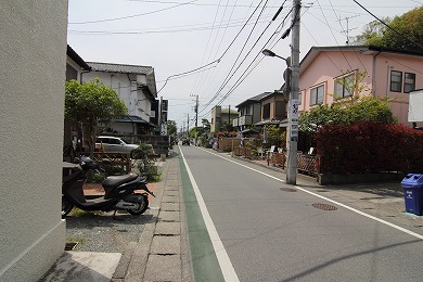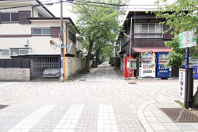 斜め右の道に入ります。(写真では正面の少し細めの道)
