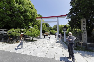 二階堂に鎮座。護良親王の通称である大塔宮(おおとうのみや)に因み、地元では大塔宮ともいわれている。祭神は護良親王。境内に摂社南方社(祭神南ノ方)村上社(祭神村上義光)がある。例祭八月二十日。もと官幣中社。明治二年七月勅令により創建。明治六年、明治天皇の行幸があり、その行在所は一部宝物の陳列所としている。境内は東光寺跡。本殿背後に土牢があり、祭神幽閉の処といラ。親王の墓は東北にあたる理智光寺趾の山頂にあって、宮内庁の所管である。九月二十二、三日の両夜、観光協会の主催で薪能が奉納される。(白井)