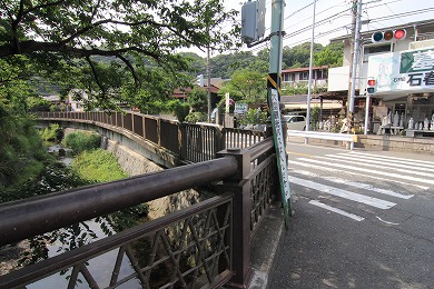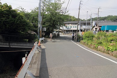 橋を渡り、道路を横断、横断後、右(東)へ。