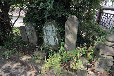 華(はな)の橋のそばには庚甫塔群があります。庚申塔とは、道端にまっってある塚のことで、多くは三猿の形を刻んだ石などを立てて神の使いとしています。村の境を守る神として、病気や鬼を払い除いて、村を守ってくれると考えられていました。