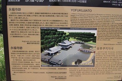 じめ数万の戦いで亡くなった人の慰霊供養(いれいくよう)のため、平泉の中尊寺の二階大堂大長寿院(だいちょうじゅいん)をまねて永福寺を建てることにしました。1192年(建久3年)本堂が完成し、続いて阿弥陀堂(あみだどう)・薬師堂(やくしどう)の三堂がそろいました。更に三堂前面には広い池がつくられ、寺内に