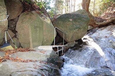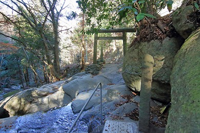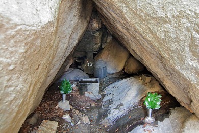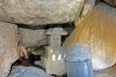 岩の重なりで出来た祠があります。