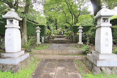 弘法大師が荻野富士(華厳山)と称する山頂付近の岩に経文を記した石を納めたことがことが起源とされている寺院。