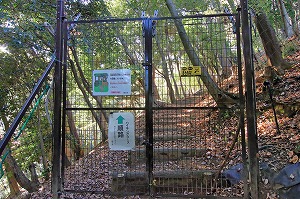 柵がありますが、扉を開けて登ります。扉を通り抜けた後は、必ず閉めてください。