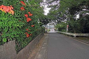 歩行者道の出口。