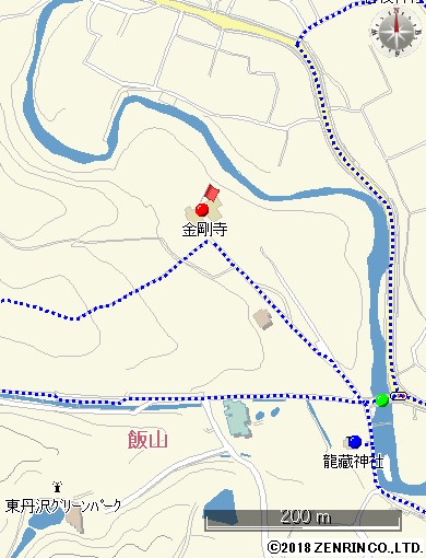 807年(大同2年)に弘法大師によって建立されたと伝わる。古くは、七堂伽藍の備わった寺院だった。飯山観音の入口ともなっている小鮎川に架かる朱塗りの橋は「庫裡橋」と呼ばれ、金剛寺の庫裡に向かって架けられていたといわれている。