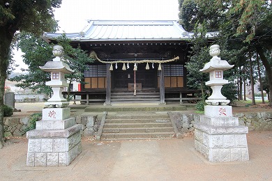 この神社は、建久(けんきゅう)五年(1194年)愛甲三郎によって再興されたとも言われています。愛甲氏の本家の横山氏は、小野妹子(聖徳太子の命により、第一回の遣隋使)の子孫と伝えられ、愛甲氏の家系の信仰は厚く、特に江声時代には、愛甲姓の武将(ぶしょう)の参詣(さんけい)が記録されています。