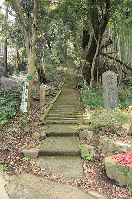 神社の入り口には芭蕉の句碑(1860年建立)もあり、社殿は300段の石段を登ったところにある。