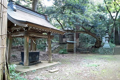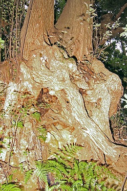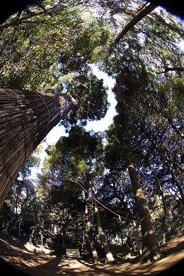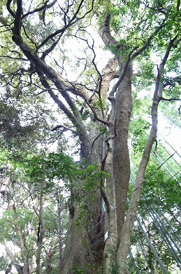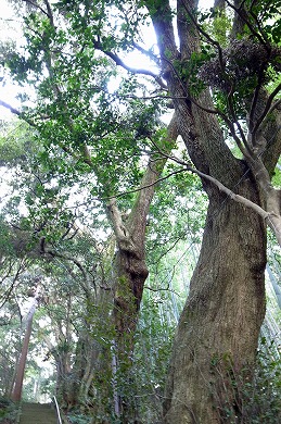 2万5千㎡を超える社叢林は、高木層にスダジイが優先し、亜高木層も含めてアラカシ、クロガネモテ、サカキ、タブノキなどで構成されています。