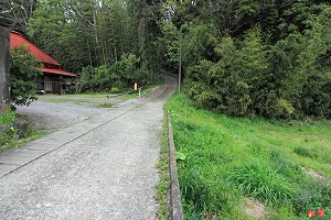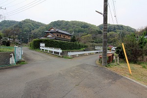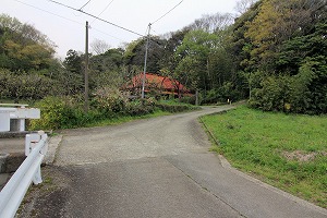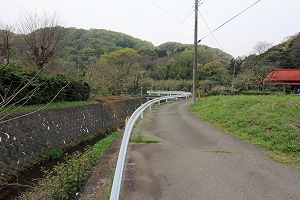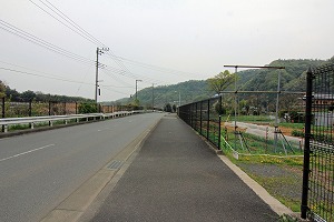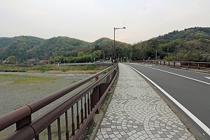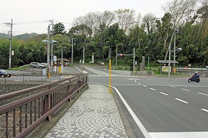 橋を渡り、道路を横断後、左へ。