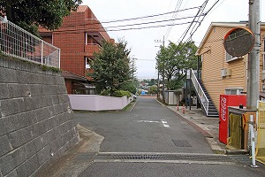 下り終えたら、道路を横断し、斜め右の道に入ります。