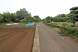 畑の間の道を行きます。