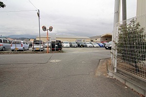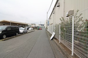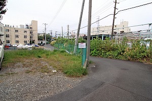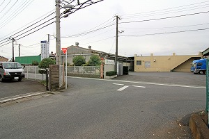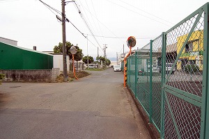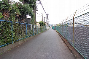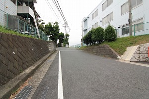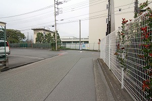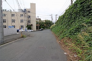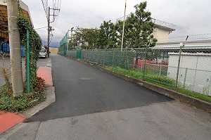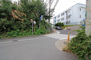 広い路に出、道路を横断し、正面右の道に入ります。