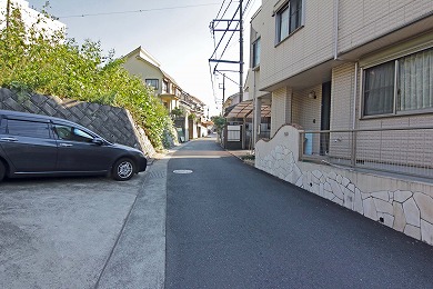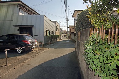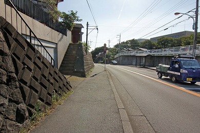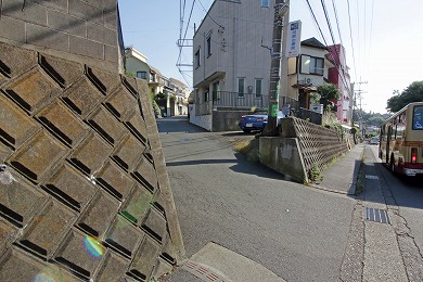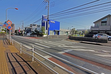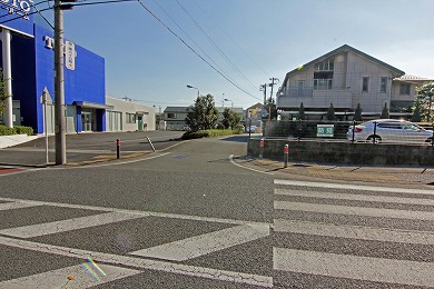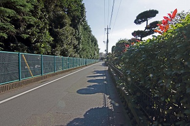 (右折後)左カーブの道を行きます。… 厚木高校に沿って行きます。