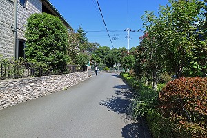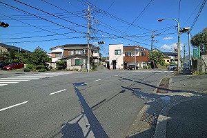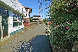 厚木高校に沿って右カーブの所を、左の道に入ります。