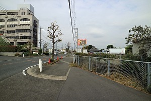広い道に出ます。ほぼ真っ直ぐ行きます。
