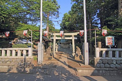 宝暦十三年(1763)に火災にあい、七十八年後の天保十二年(1841)に再建、棟札に「山王大権現」と記され、手水石や諏訪社の祠の奉納年号から見ると、社域もこのころから整えられてきたようです。