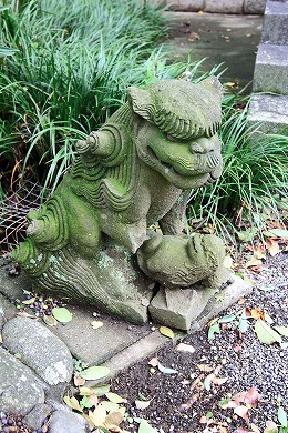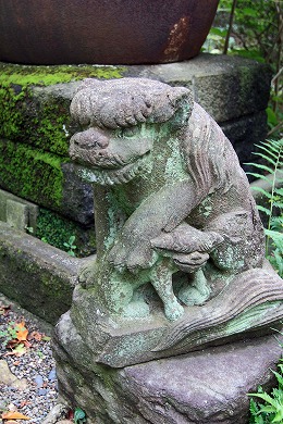 狛犬がいます。むかし神社があったのでしょうか? 子育て中の狛犬がいました。