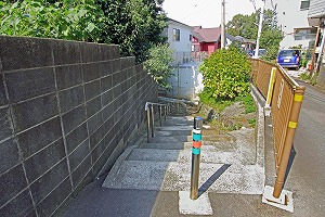 突き当たりの、斜め右前方の小径を下ります。